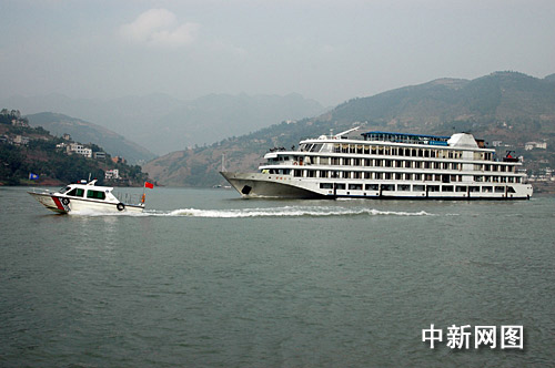海巡艇在三峽庫(kù)區(qū)維護(hù)客船。