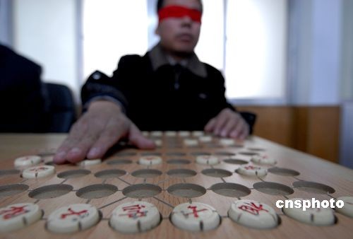 11月13日,東省棗莊市首屆盲人象棋選拔賽舉行,前兩名將代表棗莊參加本月底在泰安舉行的全省首屆盲人象棋比賽。圖為盲人選手在比賽中。 中新社發(fā) 高啟民 攝