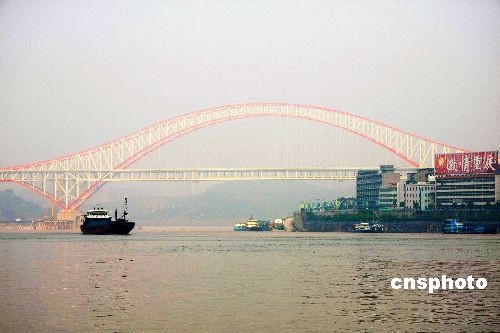 2008年11月13日上午,重慶市政府新聞辦舉行11月月度新聞發布會。重慶市建委新聞發言人趙立亞介紹,朝天門大橋原定今年年底通車,由于技術原因預計推遲至明年5月通車。中新社發 趙俊超 攝