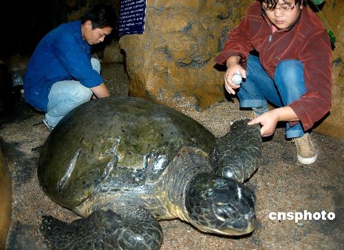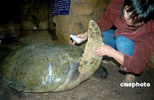 圖:連云港水族館精心救治百歲受傷綠海龜