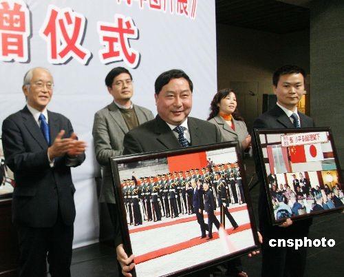 11月25日下午,日本駐重慶總領事館總領事富田昌宏將《中日友好和平條約締結暨鄧小平訪問日本30周年圖片展》展品捐贈給廣安鄧小平紀念園陳列館。中新社發(fā) 杜修戰(zhàn) 攝