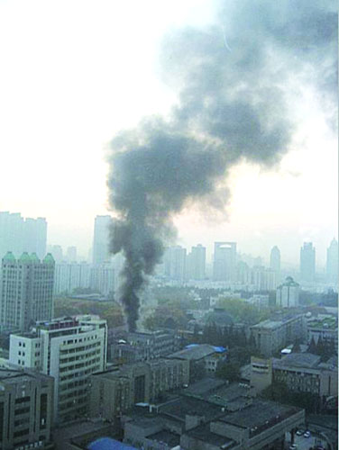 在新街口看到滾滾濃煙