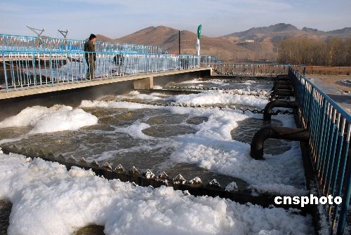12月2日,內蒙古克什克騰旗經棚鎮污水處理廠工作人員正在爆氣池檢測曝氣量。內蒙古克什克騰旗經棚鎮污水處理廠是西拉沐淪河流域首座污水處理廠。目前,已經通過環保部門檢測驗收正式運營。該廠日處理污水1.5萬噸,對西拉沐淪河及西遼河的用水安全起了極大的保障作用。中新社發 孫國樹 攝