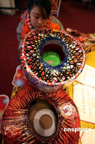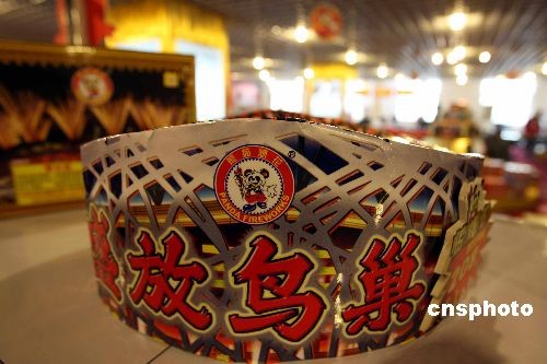 十二月七日晚,北京奧運鳥巢煙花獨家生產及燃放實施單位—熊貓煙花推出的“牛”年鳥巢系列煙花,與部分京城市民見面。其中一款“鳥巢”形狀的噴花類煙花,立即成為人們關注的焦點。中新社發 任海霞 攝