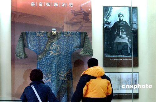 12月17日,奉系軍閥張作霖的九龍袍等文物首次在沈陽張氏帥府博物館展出。據館方工作人員介紹,這是末代皇帝溥儀因張作霖剿匪有功而賞賜給他的。中新社發 羅瀾 攝