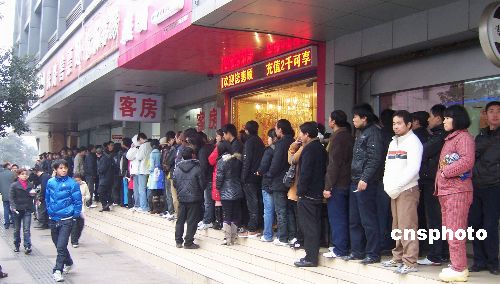元旦剛過,浙江杭州火車站武林路售票處的買票隊伍已經排到了售票大廳外。1月的杭州雖然寒風瑟瑟,但是歸家心切的市民依然秩序井然。中新社發 趙曄嬌 攝