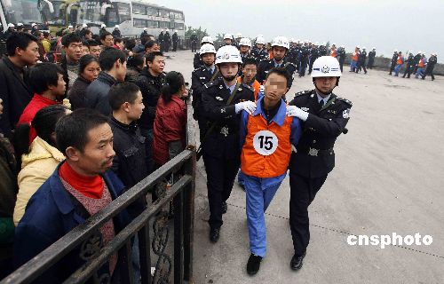 1月16日,重慶市公安局將30名扒手分別押至該市渝中區朝天門、菜園壩長途汽車站、渝北區龍頭寺汽車站等主城區4個人口密集地區,請市民辨認和舉報。該市公安局方面稱,這些扒手幾乎都是慣扒,且全部是最近在他們作案時抓到的。之所以押到車站鬧市,是希望曾經失竊的市民現場辨認和舉報,同時也是警方對扒手作案現場的恢復、重建等系列案偵工作手段。中新社發 吳子敬 攝