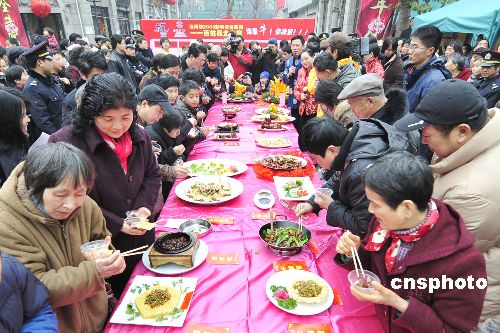 1月29日,杭州清河坊歷史街區(qū)舉辦“全牛宴”展評活動,街區(qū)內(nèi)十余家老字號餐飲業(yè)名店推出與“牛”有關(guān)的各式創(chuàng)新菜肴,由現(xiàn)場市民百姓品嘗并評選出“最牛”菜肴,展示老字號企業(yè)以創(chuàng)新創(chuàng)意迎牛年牛市的自信姿態(tài)。 中新社發(fā) 李忠 攝
