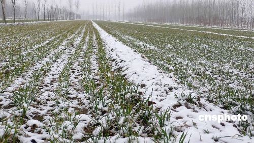 2月18日至2月19日凌晨,旱情嚴重的山東聊城降下雨雪,溫度降到零下3攝氏度,雨雪量雖然不大,但緩對解旱情、對凈化空氣,小麥生長有一定的益處。 中新社發 張憲舉 攝
