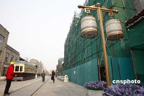 圖:前門大街加緊裝修迎國慶60周年