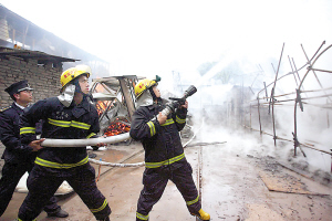 大約8點30分,活動板房底樓最邊上的一個房間最先冒出濃煙,接著躥起明火。江北區(qū)消防支隊石馬河中隊在10分鐘內趕到現場,最先起火的1號樓已被大火吞沒,3號樓也開始燃燒。20分鐘內,兩棟活動板房就已完全過火。