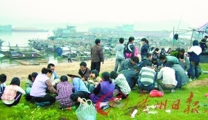 昨天下午4時(shí)許,記者在現(xiàn)場(chǎng)看到,300多名三水大塘的漁民聚集在北江邊。此后,村民登上已等候在北江邊的大船,乘船過江前往江河對(duì)面的大坑山墓群,那里就是林姓家族祖先墓穴之處。祭拜持續(xù)40分鐘左右結(jié)束,隨后村民乘船過江返回。