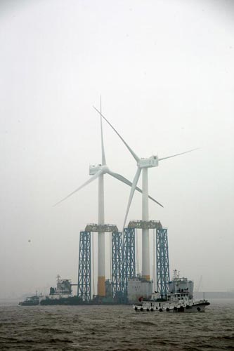 人民網(wǎng)上海4月5日電 昨晚,國家海上風(fēng)電示范項(xiàng)目、上海市重大工程——東海大橋100兆瓦海上風(fēng)電場的第二、第三臺風(fēng)機(jī),在上海洋山港海事處的護(hù)航和監(jiān)控下,經(jīng)過38海里的海上航行,被一次性運(yùn)抵吊裝作業(yè)地點(diǎn)。