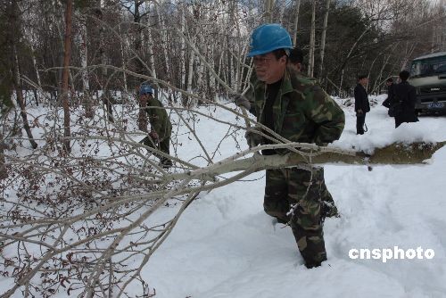 4月23日,當牡丹江市電業搶修人員將三道林場內最后一處電線桿上的刀閘閉合,7000多戶因暴雪導致斷電的人家,終于重新恢復正常的生產生活。 4月21日,黑龍江省牡丹江市出現雨夾雪天氣,其中牡丹江市三道林場的局部林區因當地“小氣候”影響遭受暴雪襲擊,最深處的積雪厚度達到1米以上,林區內的一些林木被大雪壓斷,通過林區內的部分供電線路短路。從4月21日至4月23日,牡丹江市電業系統出動100多名搶修人員奮戰在40多公里的林區供電線路上,及時排除短路故障及線路險情。直到4月23日下午1點30分,各個停電村屯才陸續恢復供電。中新社發 莊文斌 攝
