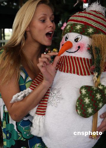 圖:迎圣誕國際比基尼小姐與雪人合影