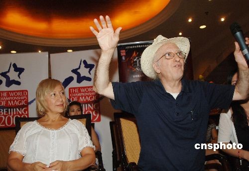 7月20日,2009北京世界魔術大會召開發布會,宣布開幕式晚會預演將于7月21日至23日在北京保利劇院拉開帷幕。9位在國內外獲得金獎的魔術師將亮相本次晚會,獲得中國雜技“金菊獎”金獎的農民魔術師汪奇魔、“金菊獎”全國魔術比賽金獎獲得者傅琰東、曾獲“寶豐杯”全國魔術金獎的戚原睿、首次展示“水里變魔術”的鄔鵬程將同臺表演。圖為將于本次大會獻藝的西班牙著名魔術師胡安(右)暢談“魔幻奧秘”。中新社發 李學仕 攝