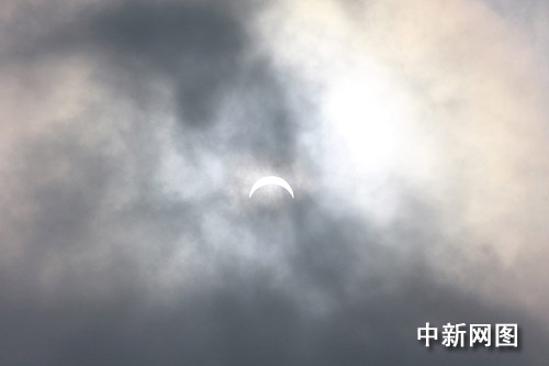 九點三十五分左右,天空突然變暗。現場開始響起一片歡呼聲,來自世界各地的游客用自己的語言紛紛表達此刻的喜悅。幾個外國天文愛好者當場唱起歌來,隨后許多人跟著節奏一起跳起了舞。九點四十分左右,天空重新變亮。部分游客開始逐漸離開廣場,但仍有天文愛好者守候在現場,期待能夠透過烏云間隙拍攝到“重生”的太陽。