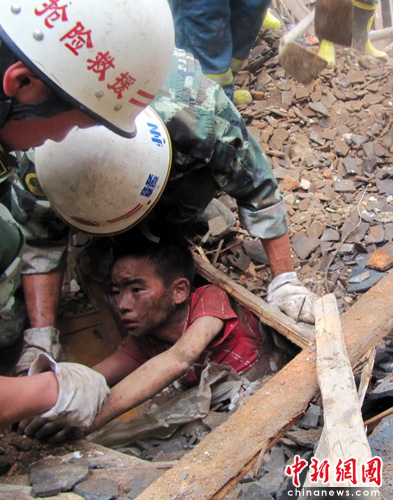 陸向前立即采取喊話的方式了解被困者的位置,不一會(huì)兒,從廢墟里的2個(gè)位置傳來了被埋者的微弱聲音。“在這里!”一名被困婦女在內(nèi)墻里面、一名小男孩在中間位置。