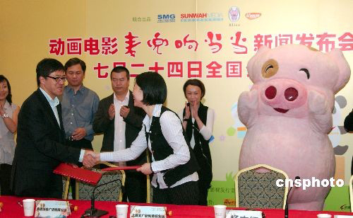 6月18日,深受影迷喜歡的動(dòng)畫(huà)人物“麥兜”將于今年暑假正式登陸大陸銀幕。18日下午,麥家碧攜“麥兜”出席上海國(guó)際電影節(jié)發(fā)布會(huì),自稱在生活中自己是麥兜,先生是麥太!尔湺怠反箨懲顿Y方上海文廣新傳媒集團(tuán)在《麥兜響當(dāng)當(dāng)》的新聞發(fā)布會(huì)上宣布,這部動(dòng)畫(huà)電影將于7月24日在全國(guó)公映。 中新社發(fā) 張馬赫 攝