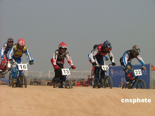 十月二十二日上午,第六屆全國城運(yùn)會(huì)BMX(小輪車)男子越野賽在洛陽賽區(qū)舉行,運(yùn)動(dòng)員們經(jīng)過幾個(gè)回合的預(yù)賽較量后進(jìn)入決賽,香港運(yùn)動(dòng)員王史提芬率先奪得男子冠軍,煙臺(tái)市的孫越、大同市的任超分列二、三名。中新社發(fā) 史寶銀 攝