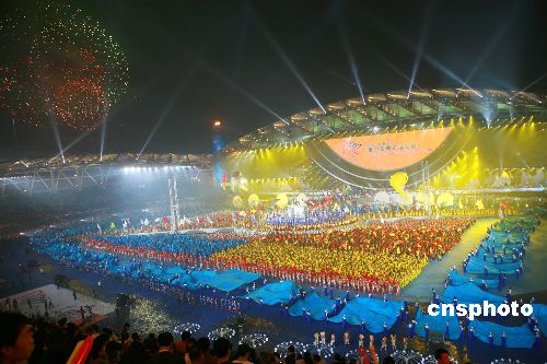 中國第六屆全國城市運(yùn)動會在湖北武漢體育中心開幕。本屆城運(yùn)會共設(shè)立24個(gè)比賽大項(xiàng)、27個(gè)分項(xiàng)、288個(gè)小項(xiàng),參賽運(yùn)動員達(dá)6351人,為歷屆城運(yùn)會之最。本屆城運(yùn)會將于11月3日閉幕。據(jù)悉,城運(yùn)會是中國每4年舉辦一次的全國大型綜合性體育盛會。中新社發(fā) 宋建春 攝
