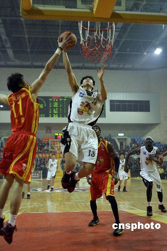 11月16日晚,在山西太原進行的2007-2008賽季CBA聯賽第9輪角逐中,浙江廣廈隊以108:96客場戰勝山西中宇隊結束連敗,中宇隊則遭遇五連敗。根據賽程安排,山西中宇第10輪的對手將是浙江萬馬,而浙江廣廈將對陣北京金隅。中新社發 張云 攝