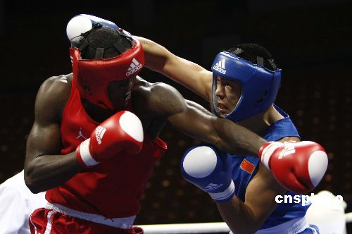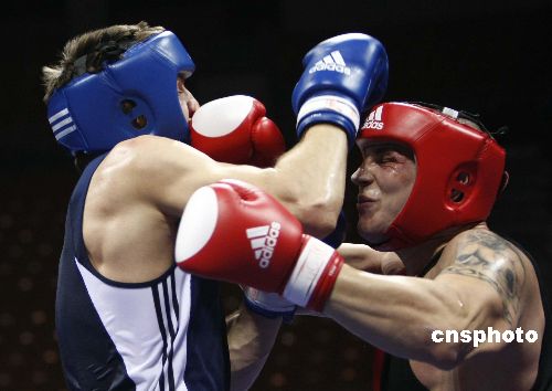 十一月十九日,“好運北京”2007年國際拳擊邀請賽在北京工人體育館進行第四單元的比賽,本次邀請賽有來自十七個國家和地區的十八支隊伍參加,采用單敗淘汰制方式,進行預賽、半決賽、決賽共七十場比賽,比賽時間為十一月十七日至二十二日。中新社發 盛佳鵬 攝