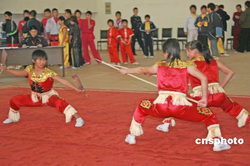 2007年11月19日,為期3天的“2007中國安徽首屆傳統武術大會暨武術套路國際邀請賽”在安徽省黃山市舉行。本次比賽分為傳統武術和武術套路兩個部分,其中有個人單項、個人全能比賽;有傳統拳術、傳統器械、對練3個項目。來自中國、美國、澳大利亞、波蘭、日本、新加坡、加蓬、越南、菲律賓、古巴和中國香港等十多個國家和地區,共有43支代表隊的439名運動員參加比賽。中新社發 方也廣德 攝