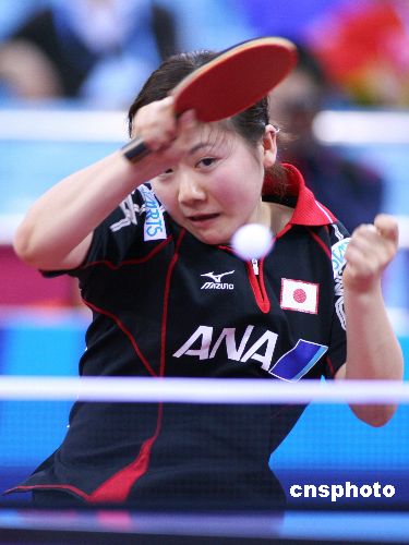 12月14日,2007年國際乒聯職業巡回賽總決賽女單首輪,頭號種子郭躍在先失一局的情況下連扳4局淘汰日本選手福原愛,昂首晉級八強。中新社發 富田 攝