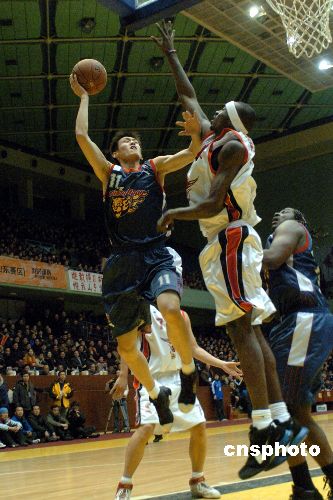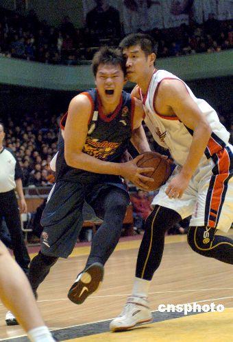 2007年12月30日,2007-08CBA職業聯賽常規賽第28輪在山東濟南的一場比賽中,主場作戰的山東黃金男籃以106比104勝廣東宏遠男籃。中新社發 張侃 攝