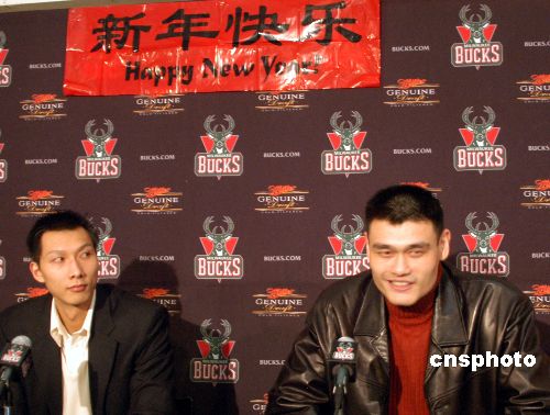 圖:姚明易建聯“德比戰”后齊賀中國年