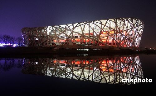 圖:國家體育場“鳥巢”進(jìn)行全面試燈