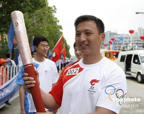 圖:安徽抗震勇士傳遞奧運(yùn)圣火