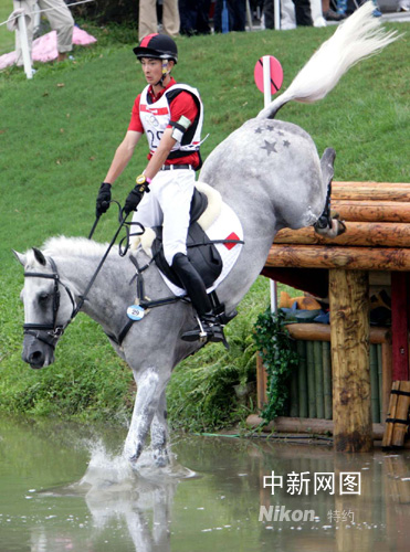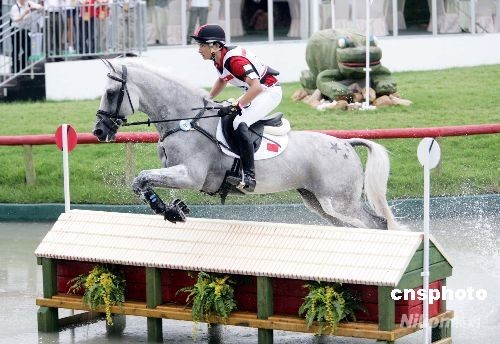 八月十一日,奧運馬術比賽團體及個人越野賽在香港上水雙魚河舉行,中國選手華天在內的四名選手,分別因為馬匹踫到障礙物而墮馬及馬匹拒跳,全部被取消資格。中新社發 洪少葵 攝
