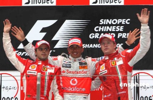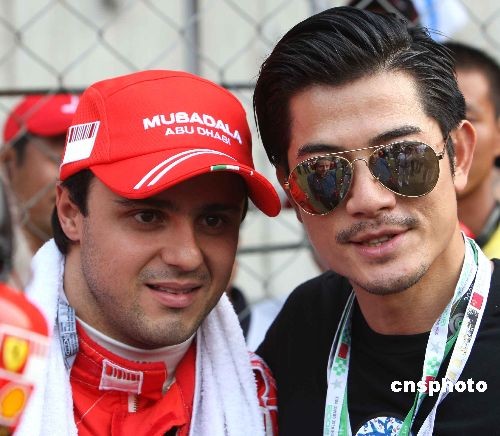 2008賽季F1第17站中國大獎賽10月19日在上海國際賽車場舉行,香港明星郭富城賽場為馬薩助威。中新社發 趙振清 攝