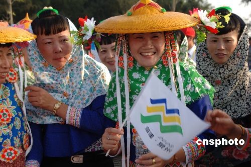 十月二十九日,第六屆全國農運會自行車比賽在閩南惠安收官,由眾多惠安女組成的啦啦隊為選手加油助陣。中新社發 鄭祚聲 攝