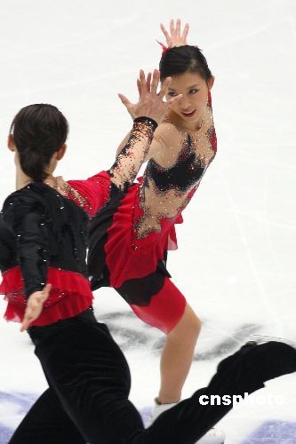 11月7日,2008中國杯世界花樣滑冰大獎賽在北京首都體育館進行第二天的爭奪。在壓軸進行的雙人自由滑比賽中,龐清/佟健獲得銅牌。中新社發 廖文靜 攝