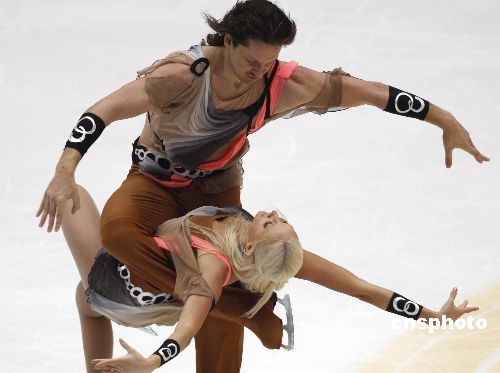 11月8日,2008中國杯世界花樣滑冰大獎賽繼續在北京首都體育館舉行。在結束的冰舞比賽中,俄羅斯選手多姆尼娜/沙巴林奪得冠軍。中新社發 盛佳鵬 攝