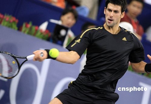 11月9日,2008年上海網(wǎng)球大師杯在上海旗忠網(wǎng)球中心拉開(kāi)戰(zhàn)幕。在當(dāng)日進(jìn)行的金組首場(chǎng)比賽中,塞爾維亞小天王德約科維奇以2比0戰(zhàn)勝阿根廷選手德?tīng)柌ㄌ亓_,迎來(lái)自己在上海網(wǎng)球大師杯上的首場(chǎng)勝利。去年,德約科維奇首次亮相上海網(wǎng)球大師杯,小組賽3戰(zhàn)盡墨。中新社發(fā) 湯彥俊 攝