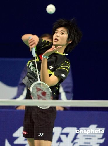 11月20日,2008年中國羽毛球公開賽繼續在上海進行,在女單八分之一比賽中,中國小將王琳對陣德國的徐懷雯,結果王琳以21-17,21-15連勝兩局晉級女單八強。此前,李永波曾表示,王琳將是中國羽毛球女單接班人。中新社發 湯彥俊 攝