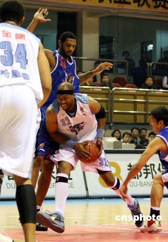 11月23日,在2008—2009賽季CBA聯(lián)賽第四輪比賽中,北京金隅隊主場戰(zhàn)勝天津榮鋼隊,獲得聯(lián)賽開始后的首場勝利。三連敗后的北京金隅回到主場迎接天津榮鋼的挑戰(zhàn)。開場后天津隊雙外援發(fā)揮出色,比分領(lǐng)先,但北京金隅很快適應(yīng)了天津隊的打法,加強防守限制了對方外援在內(nèi)線的發(fā)揮,在第四節(jié)逐漸將分差拉大,逐步奠定了勝勢,最終將比分定格在98比84。中新社發(fā) 王韶驊 攝