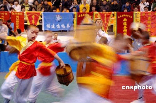 十二月十四日上午,“二00八閩臺南少林傳統武術交流大賽暨學術交流會”在福州市開幕。中新社發 鄭祚聲 攝