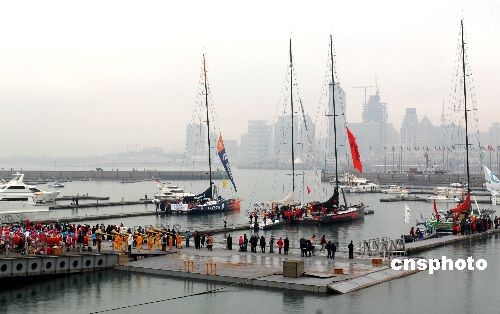 2月14日,2008-2009年沃爾沃環(huán)球帆船賽青島站舉行起航儀式。據(jù)悉,為了讓民眾充分領(lǐng)略沃爾沃環(huán)球帆船賽的魅力,青島站組委會向公眾免費開放奧帆中心,吸引了大量游客。截至當(dāng)日,青島奧帆中心共接待海內(nèi)外觀眾四十余萬人次。沃爾沃環(huán)球帆船賽是繼奧帆賽、殘奧帆賽后,青島承辦的又一項全球頂級專業(yè)帆船賽事,也是中國首次在冬季寒冷氣候下在北方水域承辦的帆船賽事。中新社發(fā) 衛(wèi)卿 攝