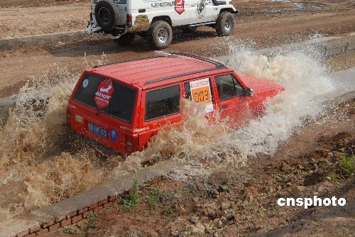 2009年4月29日,“景陽春杯”越野車王爭霸賽在發動機的咆哮聲中拉開帷幕。本次大賽的最大魅力在于極強的觀賞性和參與性,賽手需要通過越野賽道內36組障礙,尤其需要突破場地內極具粘性的泥地,是通常項目無法比擬的!熬瓣柎罕痹揭败囃鯛幇再悾孕麄髻愂乱约吧綎|文化產業及旅游產業的繁榮景象為主題,全方位展示汽車文化的獨有魅力及無限的發展空間。“景陽春杯”越野車王爭霸賽,系山東省體育總局主辦, 安丘市人民政府、山東青云國際旅游度假區股份有限公司承辦的跨度為五個月的大型賽事。中新社發 王曉光 攝