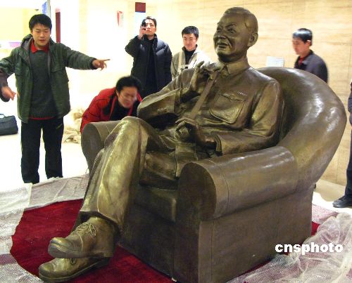 一尊重700多公斤的梅蘭芳銅像于11月22日夜由深圳運抵北京,安置于梅蘭芳大劇院的大廳中央。投資2億多元人民幣修建的梅蘭芳大劇院業已竣工,并將于11月28日正式掛牌開業。梅蘭芳先生(1894-1961)是中國戲曲藝術大師,杰出的京劇表演藝術家。該銅像由中國國家京劇院監制,深圳市禮儀之邦文華發展公司出品。中新社發 鄒憲 攝