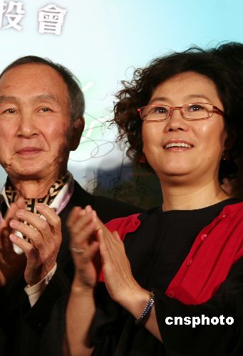 十二月四日,“二00七臺灣國際影視創投會”在臺北亞太會館開幕,大陸著名導演李少紅執導的電視劇《紅樓夢》等十七件影視作品入選。圖為李少紅(右)出席創投會開幕式。中新社發 董會峰 攝