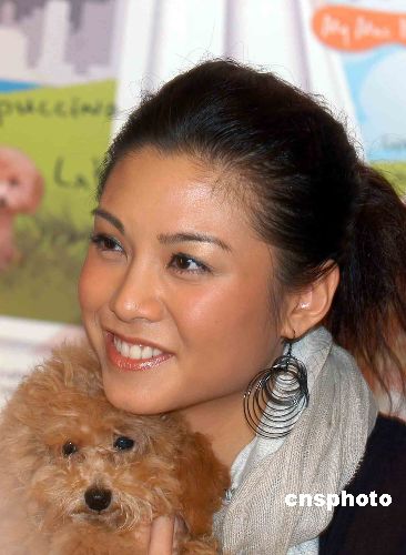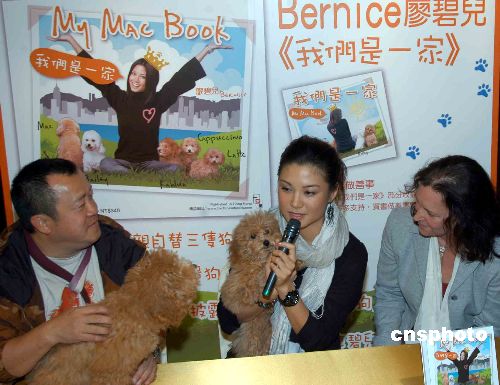 12月17日,香港藝人廖碧兒在記者會(huì)上推出首本寵物圖文集《我們是一家》,記載她和這“一家五狗”樂(lè)也融融的生潔點(diǎn)滴,著名影人曾志偉出席記者會(huì)以示支持。中新社發(fā) 譚達(dá)明 攝