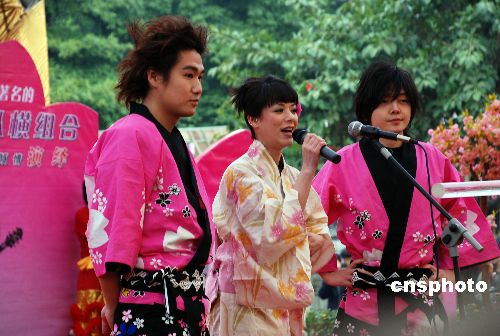 圖為日本著名偶像組合范姜明月@涉谷縱橫在櫻花節上表演。以“億萬櫻花舞羊城”為主題的首屆廣州櫻花文化節2月4日至3月23日在廣州雕塑公園舉行。這是目前國內規模最大、持續時間最長、最具特色的櫻花文化節。屆時,將有12000多棵櫻花在雕塑公園相繼綻放。為烘托節日氣氛,這次的櫻花主要以紅色、粉紅色為主。中新社發 袁宏偉 攝