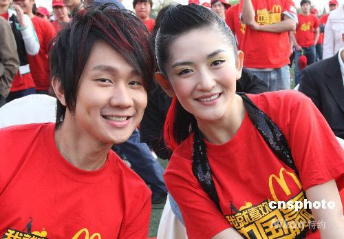圖:謝娜林俊杰加盟奧運會百日倒計時麥當勞助威團