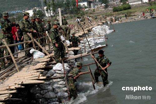 中國空降兵涪江架橋解救受堰塞湖潰堤威脅民眾